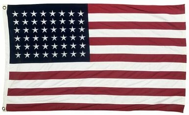 These beautiful, sewn, and embroidered 48-star American flags are constructed of soft cotton fabric with densely embroidered stars and sewn stripes. If you are looking for a traditional or old-fashioned look, these flags are for you. One can be flown proudly outside your home, or business, although cotton is not very durable or fade-resistant with prolonged exposure to the outdoor elements. Cotton flags are best suited to hang indoors or display outdoors on special occasions or parade events. They are also perfect for framing. They may be tea-stained if an antiqued or vintage look is desired. Celebrate our American heritage with a beautifully sewn 48-star American flag.