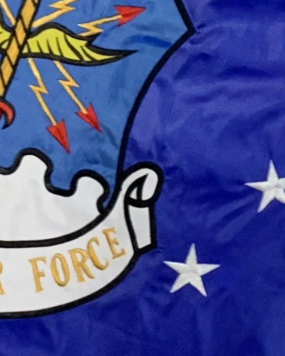 This richly embroidered beautiful flag is excellent for hanging indoors but can also be flown outdoors although it is not as durable as our heavy-duty 2-ply polyester Air Force flags.