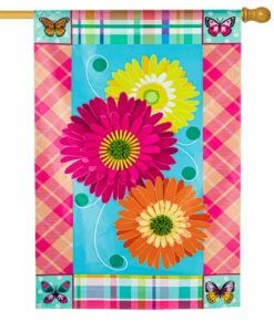 Burlap Originals House Flags are a technological breakthrough from the designers at Magnolia Lane. The textured polyester fabric has the look and feel of burlap and is highly weather-resistant and durable, so you get the fashionable look of burlap with the durability of polyester. The artwork is embroidered onto two separate panels and then sewn together, back to back for a double-sided, rich-looking, luxurious flag with a very high-end appearance. Fits on any standard 5′ pole. Flag size 29″ x 43″