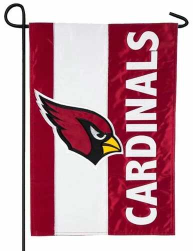 Show your support for the Arizona Cardinals by flying this beautifully crafted, double sided, applique garden flag on game day or every day. The lettering reads correctly from both sides of the flag and the embroidered, appliqued Cardinal mascot is sewn onto both sides as well. Makes a great gift for your favorite Cardinals fan!