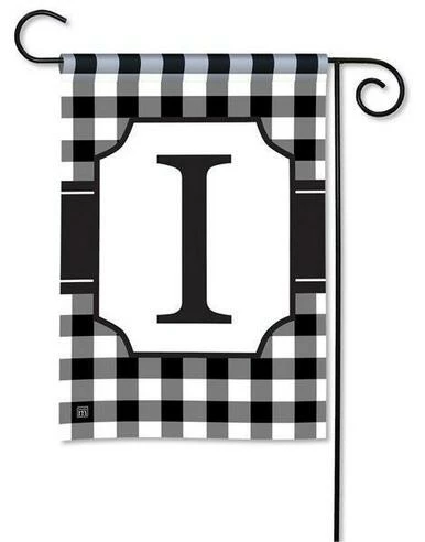 This letter I monogrammed garden flag shows a bold letter “I” against a white background, framed with an ornate border and a fashionable, black and white checkered background. The artwork and the letter are visible on both sides of the flag, and the letter reads correctly on one side only. Dress up your Home or business in stylish fashion with this hot design.