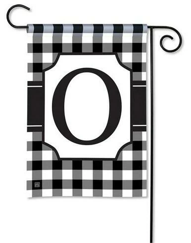 This letter O monogrammed garden flag shows a bold letter “O” against a white background, framed with an ornate border and a fashionable, black and white checkered background. The artwork and the letter are visible on both sides of the flag, and the letter reads correctly on one side only. Dress up your Home or business in stylish fashion with this hot design.