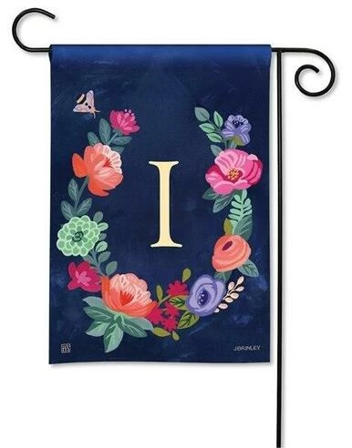 This letter I monogrammed garden flag shows a bold, crème colored letter “I” against a rich, blue background, framed with a gorgeous, fashionable floral wreath. The artwork and the letter are visible on both sides of the flag, and the letter reads correctly on one side only. Dress up your Home or business in fresh fashion with this sophisticated design.