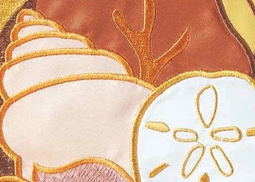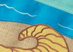 Bring the fun of the beach to your home! This burlap double applique decorative house flag depicts all of the things you will find on a day at the beach. A cornucopia of shells spills out onto the sand while the blue water is in the background. A blue border across the bottom reads, “Thankful” in script. The rich applique gives this decorative house flag a sumptuous feeling. As this flag is double sided, the message and image read correctly on both sides. This is a beautiful decorative house flag for summertime decorating.