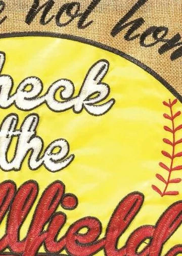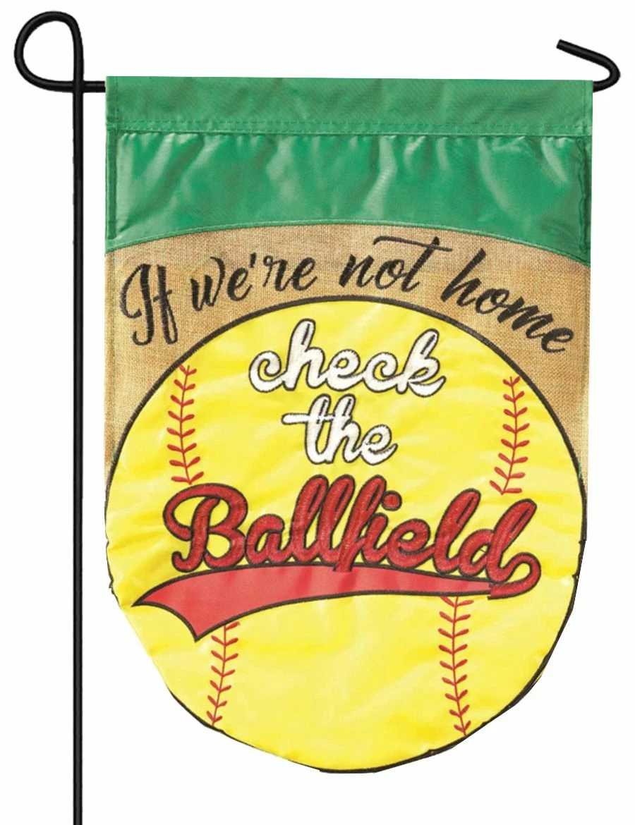 This burlap “If We’re Not Home, Check The Ballfield” double applique garden flag is a fun way to show you’re out for the season and you can be found at the ballfield. The lettering is correct on both sides. We have close-up pictures in our gallery for a better view of the flag.