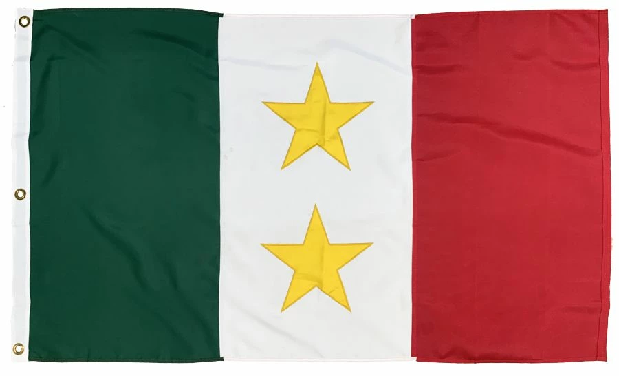This is a reproduction of the Coahuila y Tejas Tricolor Flag, of which there were many produced and likely several different dimensions. The artwork is visible on both sides of the flag. Made of 2-ply polyester which is the most durable option for outdoor use.