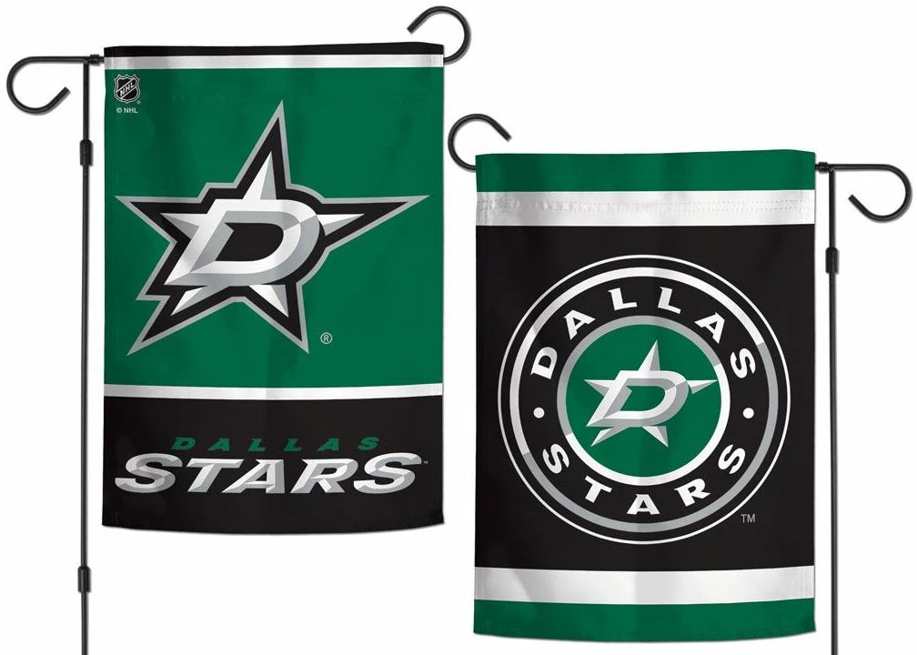NHL officially licensed, Dallas Stars logoed, decorative garden flag, featuring two different style logos on either side of the flag. Hang this cool-looking flag up for gameday or every day to show your support and pride in your Dallas Stars.