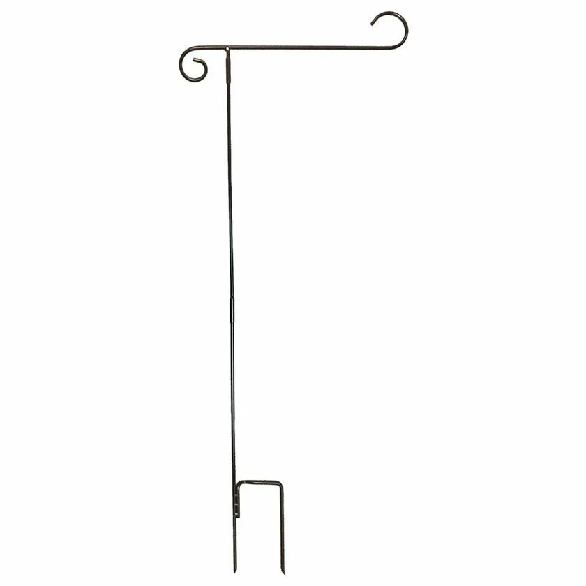 This garden flag stand has fancy curls and will add a bit of extra flair to your outdoor garden flag display. Suitable for any garden flag you see on our website.