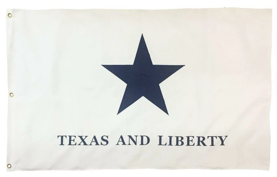This flag is a reproduction of what the Goliad Battle Flag also known as the Troutman Flag from the war for Texas independence might have looked like. The flag was presented to the Georgia Batallion of Permanent Volunteers by a young teenage girl named Joanna Troutman as they were passing through Knoxville Georgia on the way to Texas where they became part of General James Fannin’s provisional regiment. Miss Troutman also made the flag, hence the name “Troutman Flag”. There is some controversy among historians as to the exact verbiage that appeared on the flag, as the original flag was destroyed after the Goliad Massacre on March, 27th 1836, however, it is believed by many historians to have been made of white silk with a single blue star in the center and bearing the motto “Ubi Libertas habitat, ibi nostra patria est” which is Latin for “where liberty dwells, there is our fatherland” on one side while “Texas and Liberty” appeared on the opposite side, although some historians believe the second side read “Liberty or Death”. This is one possible rendition of how the Troutman Flag looked.
