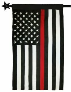 Firefighter Thin Red Line Black And White American Flag 3×5 2-Ply Polyester With Pole Sleeve