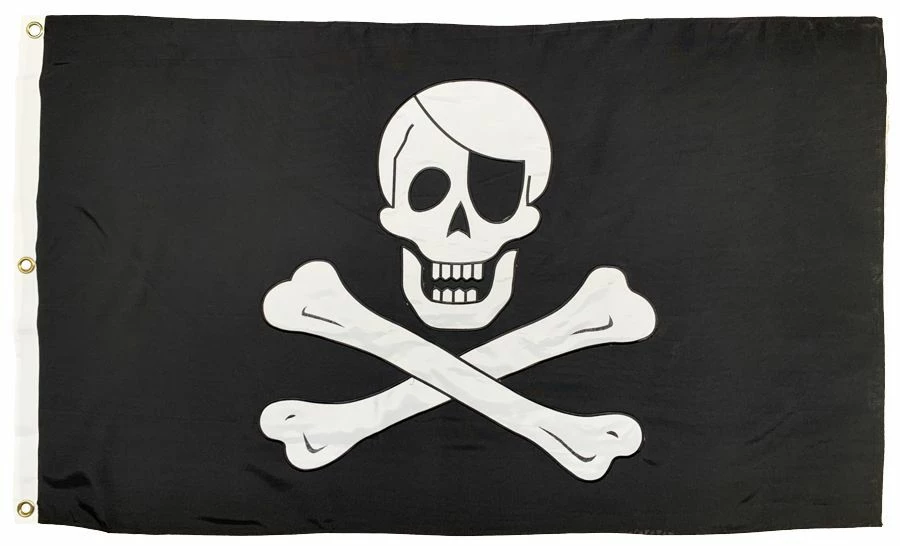 Decorate your boat, lake house, or boat dock with this cool, authentic-looking, embroidered Pirate flag. Made of 2-ply polyester, which is the most durable and best option for those who fly their flag 24/7. This flag features beautifully sewn embroidery and applique work that is visible on both sides of the flag.