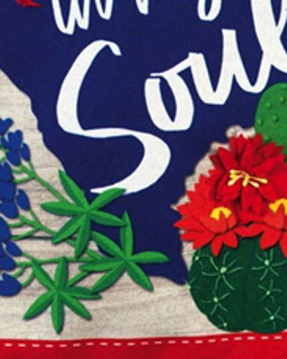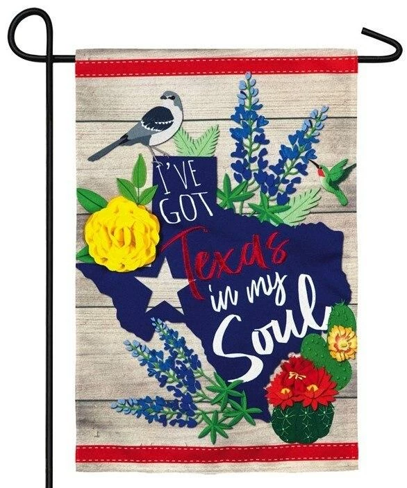If you love Texas, this Linen “I’ve Got Texas in my Soul” Decorative Garden flag is for you! Filled with bluebonnets, the yellow rose of Texas, cactus, and much more. Display this beauty at your home or business. The wording reads correctly on both sides of the flag.