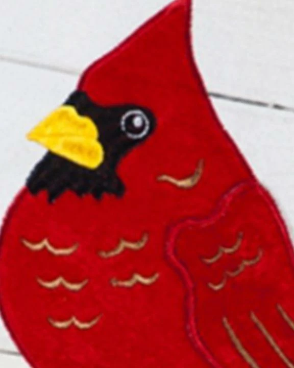 “Cardinals Appear When Angels Are Near” is the message printed on this beautiful winter cardinal house flag with lettering that reads correctly from both sides. The bright, red cardinal is appliqued and embroidered onto the linen-textured background material that is printed with a distressed, whitewashed, shiplap image that makes the redbird stand out beautifully. Perfect for Christmas or even for the entire winter season. Made for outdoor use, but looks great inside as well.