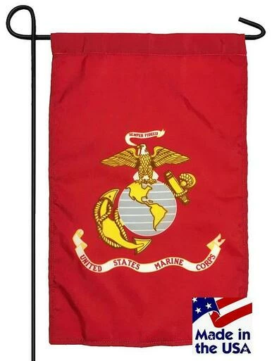 United States Marine Corps Official Eagle, Globe, and Anchor Seal, printed nylon garden flag for outdoor or indoor use. Show your support and pride for all of our US Marines. Artwork is visible from both sides of the flag. The lettering reads correctly from one side only.
