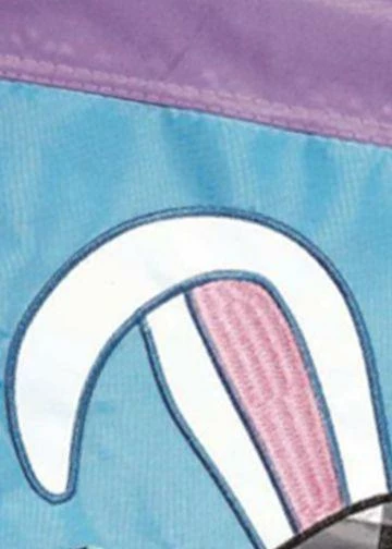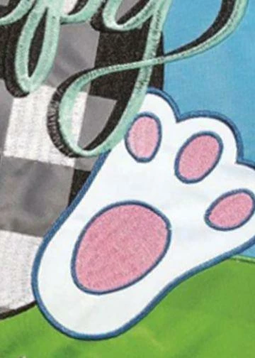 Hoppity hop into the Easter season with this whimsical decorative house flag. The center of the flag shows an Easter bunny sitting on the grass hiding behind a plaid decorated Easter egg. All that is visible is the bunny’s ears and feet. The blue sky is behind him. The message reads, “Happy Easter”. The lettering reads correctly from both sides. This decorative house flag is a fun way to usher in the Easter holiday.