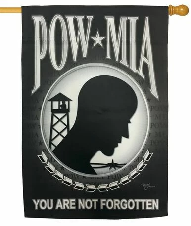 Designed by Newt Heisley in a collaborative effort with Annin flag makers and Mrs. Mary Hoff, wife of Navy Commander Michael G. Hoff was shot down in combat during the Vietnam War. The flag became a symbol for our military personnel who were missing in action or prisoners of war. The iconic and famous silhouette image as well as the slogan “You are not forgotten” are both a result of this popular flag design. The POW/MIA flag is the second most widely used flag in the USA, Only our beloved American flag has greater sales and production volume. The POW/MIA flag is also the only flag other than the American flag that is allowed to fly over the White House and continuously over the US Capital’s rotunda.