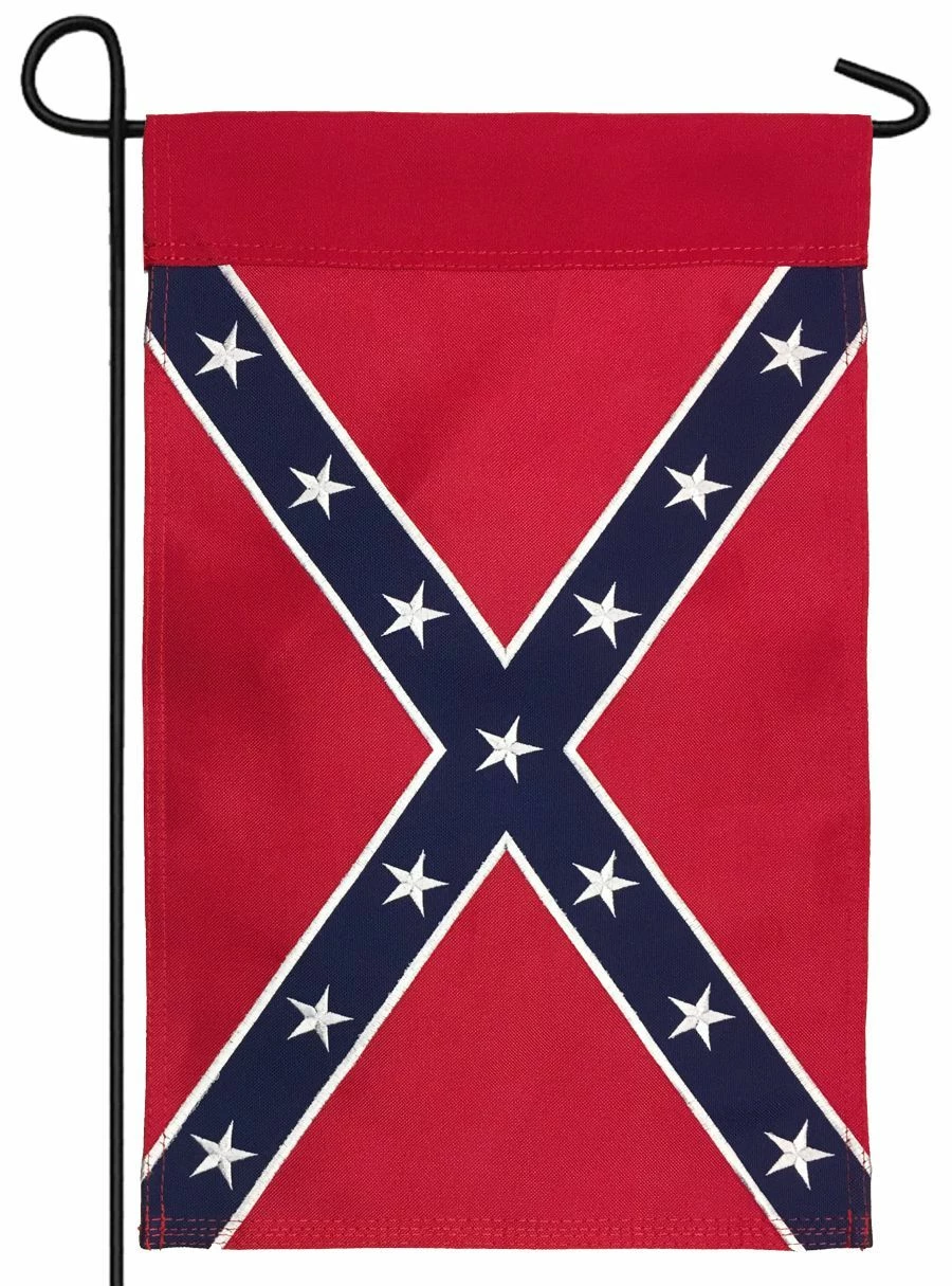 Sewn, 2-ply polyester Rebel Garden Flag with a pole sleeve to hang on a garden flagpole, just like a decorative or seasonal garden flag. Celebrate your Southern heritage with this beautiful, fully sewn, and embroidered Southern cross flag.