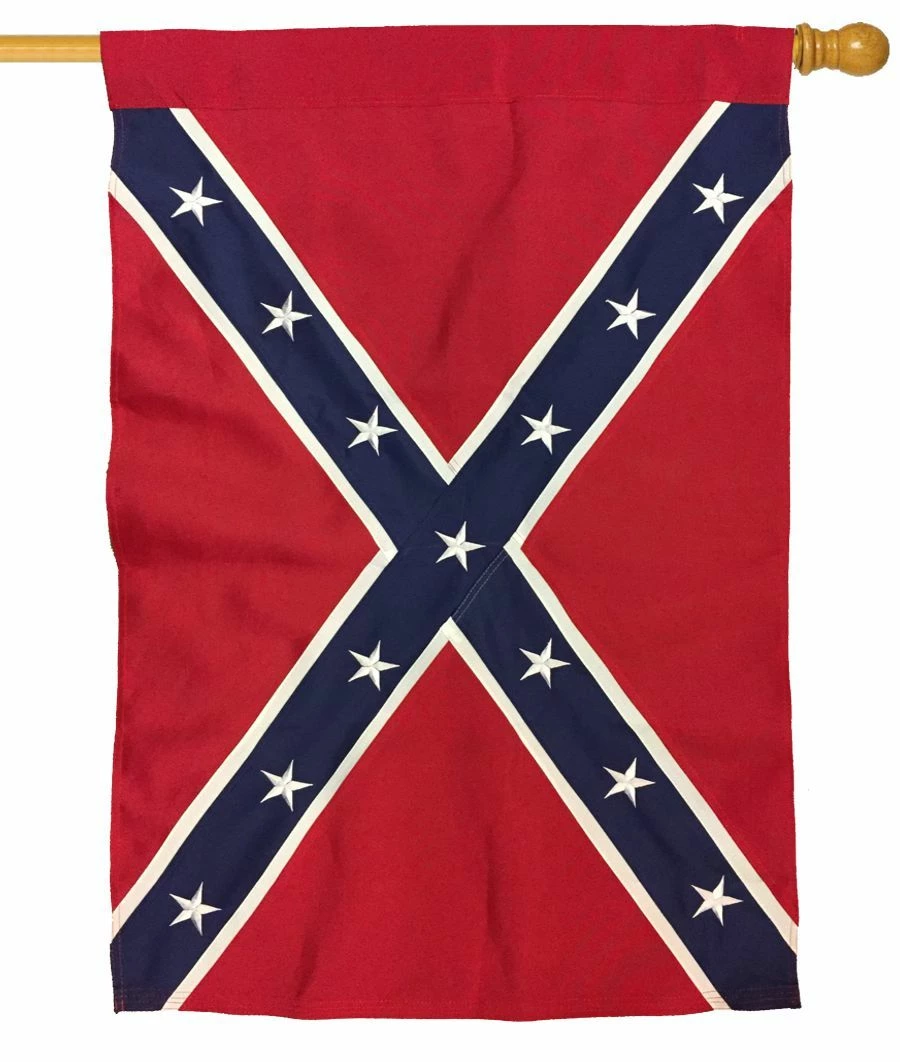 Sewn, 2 ply polyester Rebel Flag with a pole sleeve to hang on a 5′ wall-mounted pole, just like a decorative or seasonal house flag. Fly it on a 45 degree or 90-degree wall-mounted flagpole. Celebrate your southern heritage with this beautiful, southern cross flag.