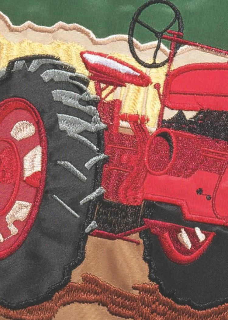 This fall, greet your guests with this lovely decorative house flag. The artwork shows a vintage red tractor sitting in a field. Below the tractor is a row of orange pumpkins. In the background, the ripe field and trees can be seen. The message reads, “WELCOME” in red lettering against the light blue sky. The message reads correctly from both sides. This decorative house flag makes a lovely addition to your country decorations this fall.