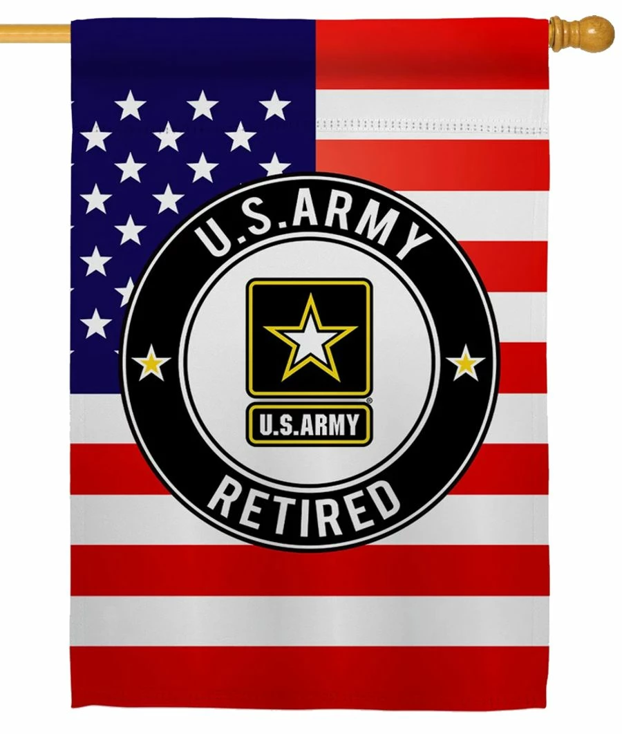 Proudly fly these colors as you reach your milestone. The United States Army Retired house flag features an American flag with “U.S. Army Retired” on the seal. The Army logo is in the center. Enjoy your retirement. Readable on both sides.