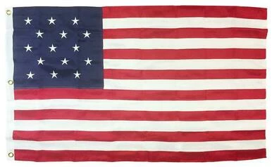 The 15 stars and stripes flag became the official flag of the United States on May 1st, 1795 as a result of Vermont and Kentucky being admitted to the union as the 14th and 15th states respectively. It is the only American flag to have had more than 13 stripes. It served as the national flag for 23 years until April 13th, 1818 when 5 stars were added, recognizing the addition of Tennessee, Ohio, Louisiana, Indiana, and Mississippi. At that time, Congress recognized that it would not be practical to continue adding stripes, so the stripe pattern on the 20-star flag was returned to 13 thus representing the original 13 states. The stripe pattern on the American flag would remain the same from that point forward. The 15 star-spangled banner is best known for being the inspiration for Francis Scott Key to write the poem that later became the American national anthem. A huge 30′ x 42′ version of the flag waved proudly over Fort McHenry throughout the 3-day British bombardment on September 12th – 14th 1814 during the war of 1812. Although the fort, as well as the flag, were badly damaged from the battle, US forces were able to prevent the British from taking the fort, thus protecting the city of Baltimore from invasion. Francis Scott Key was being held on one of the British warships during the attack and was able to observe the entire event which inspired him to write the now-famous poem “Defense of Fort M’Henry” which was published within a week after completion. The poem was later put to music and became known as “The Spangled Banner”. Over time, the song became the “unofficial” national anthem until March 3rd, 1931 when congress passed a resolution which was signed by President Herbert Hoover making the Star-Spangled Banner the official national anthem of the United States.