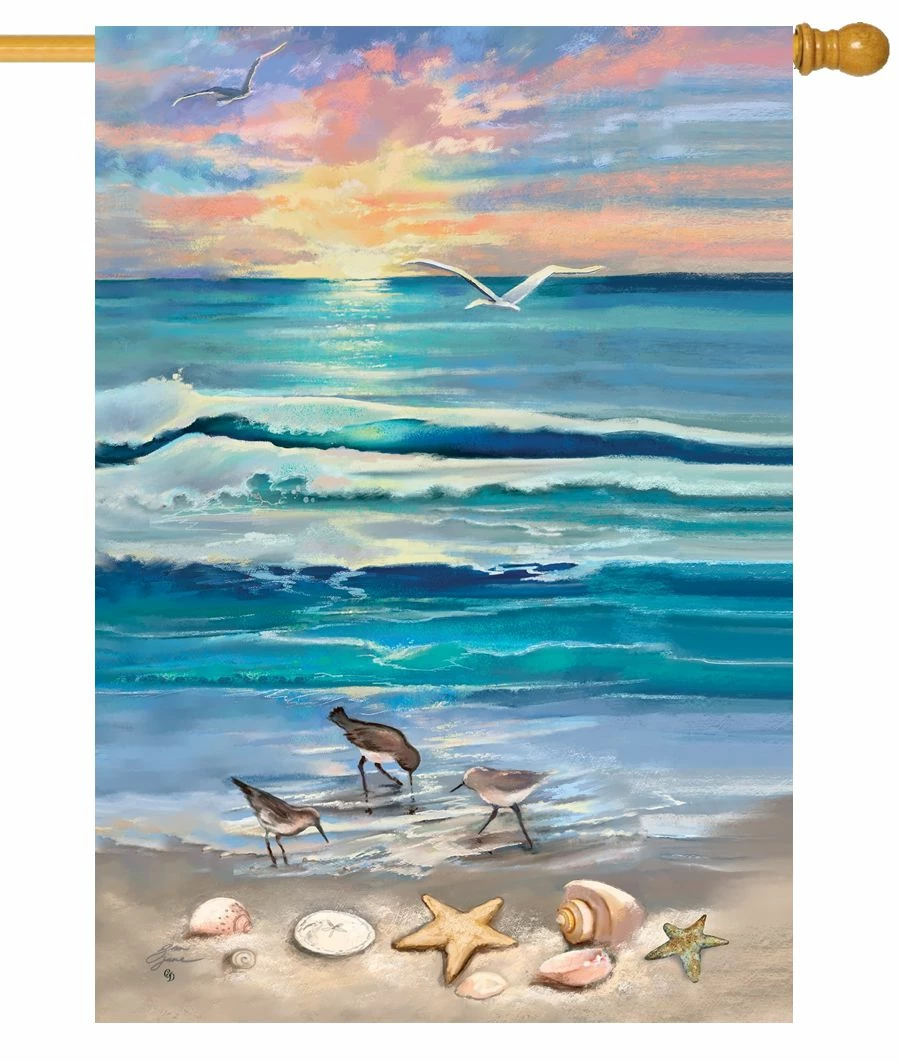 If you can’t go to the beach to watch a beautiful sunrise, bring this house flag to wherever you may be and enjoy it there. Watch the seagulls, imagine picking up shells, dig your toes in the sand, and listen to the waves come crashing in. This is a peaceful flag and will look great anywhere you’d like to display it.