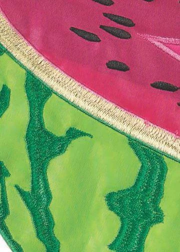 Here is a cool, sweet, watermelon-themed, double applique house flag featuring beautifully detailed embroidery and applique work depicting a nice, cold slice of watermelon to cool down a hot summer day. The embroidered “Sweet Summertime” message reads correctly from both sides of the flag. What a wonderful, bright, summer, seasonal decoration to display at your Home or business.