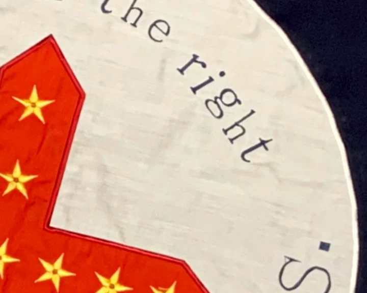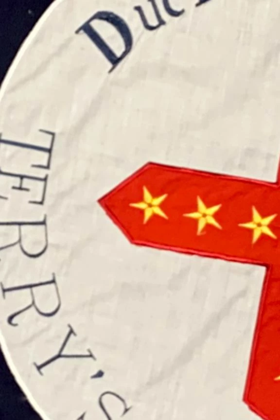 Hardee-style battle flag of the 8th Texas Cavalry. This flag is a reproduction and is designed to look as much like the original flag that was carried into battle by the 8th Texas as possible. This flag is two-sided with the Latin phrase “Ducit Amor Patriae” (Translated – The love of Country leads me) embroidered onto one side of the flag, while “God Defend the Right” appears on the other side. Terry’s Texas Rangers is embroidered underneath the red Saint George’s Cross on both sides.
