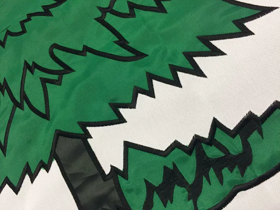2 ply polyester is the most durable option for those who fly their flag 24/7. This flag features beautiful embroidery and applique work with rich, vibrant colors. All of the artwork is visible on both sides of the flag and the lettering reads correctly from one side only.