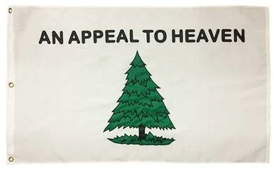 In September 1775, the Massachusetts Navy launched two strong floating batteries on the Charles River, Massachusetts, and in October, they fired on the British in Boston. Also in October, Washington commissioned the schooners, Lynch and Franklin, to cruise the Bay. When referring to these schooners, Col. Joseph Reed, Washington’s secretary, in a letter from Cambridge, Mass. to Colonels Glover and Moyland, dated October 20, 1775, gave the following instructions: “Please fix upon some particular color for a flag and a signal by which our vessels may know one another. What do you think of a flag with a white ground and a tree in the middle, the motto ‘AN APPEAL TO HEAVEN’ – this is the flag of our floating batteries.” By February 1, 1776, a total of six such “armed Vessels” of the Navy of The United Colonies of North America, had been commissioned by George Washington. In April 1776, the Massachusetts council passed a series of regulations for the Navy, among which was the following: “Resolved, that the uniform of the officers be green and white and that the colors be a white flag, with a green pine tree, and the inscription, ‘An Appeal to Heaven’.” The flag was officially adopted by the Massachusetts Navy in April of 1776. Many revolutionary war symbols and flags have recently been revived to represent resistance to an ever-expanding and overreaching federal government.