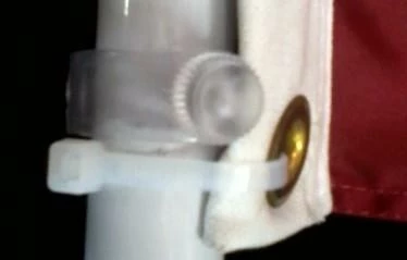 - For extra security, zip ties may be threaded through the grommets and around the pole below the bottom clamp and above the top clamp (see pictures #4 & #5 for two different zip tie mounting methods). This step is not required but is recommended (especially for flags with larger grommets). Two medium-sized, white zip ties are included in the kit.