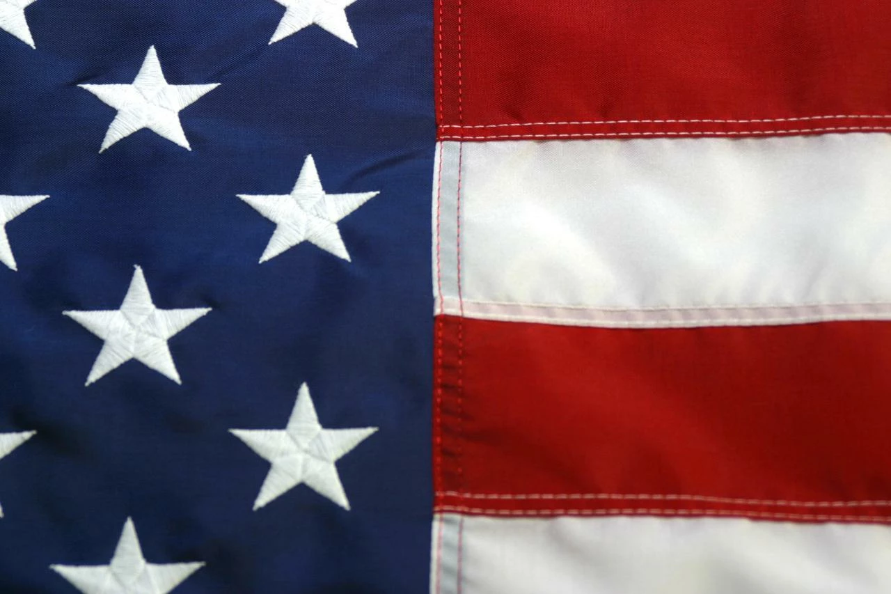 - Made in the USA 3×5 nylon American flag with sewn stripes and embroidered stars, canvas header, and brass grommets